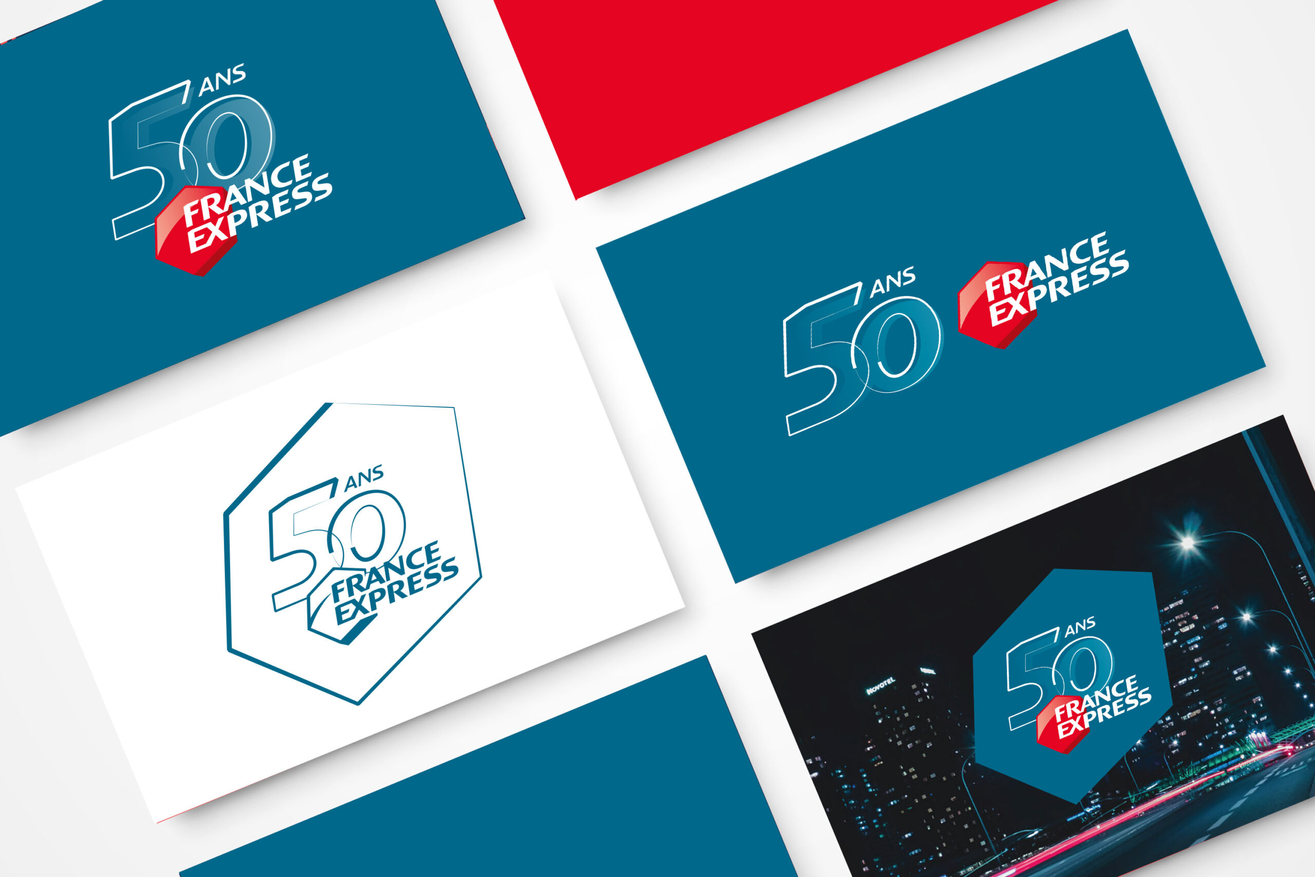 À l’occasion de ses 50 ans en 2020, France Express a souhaité marquer l’événement avec une identité visuelle spécifique. L’agence initiales BB a conçu un logo anniversaire qui célèbre ce demi-siècle d’histoire, tout en respectant les codes graphiques de la marque.